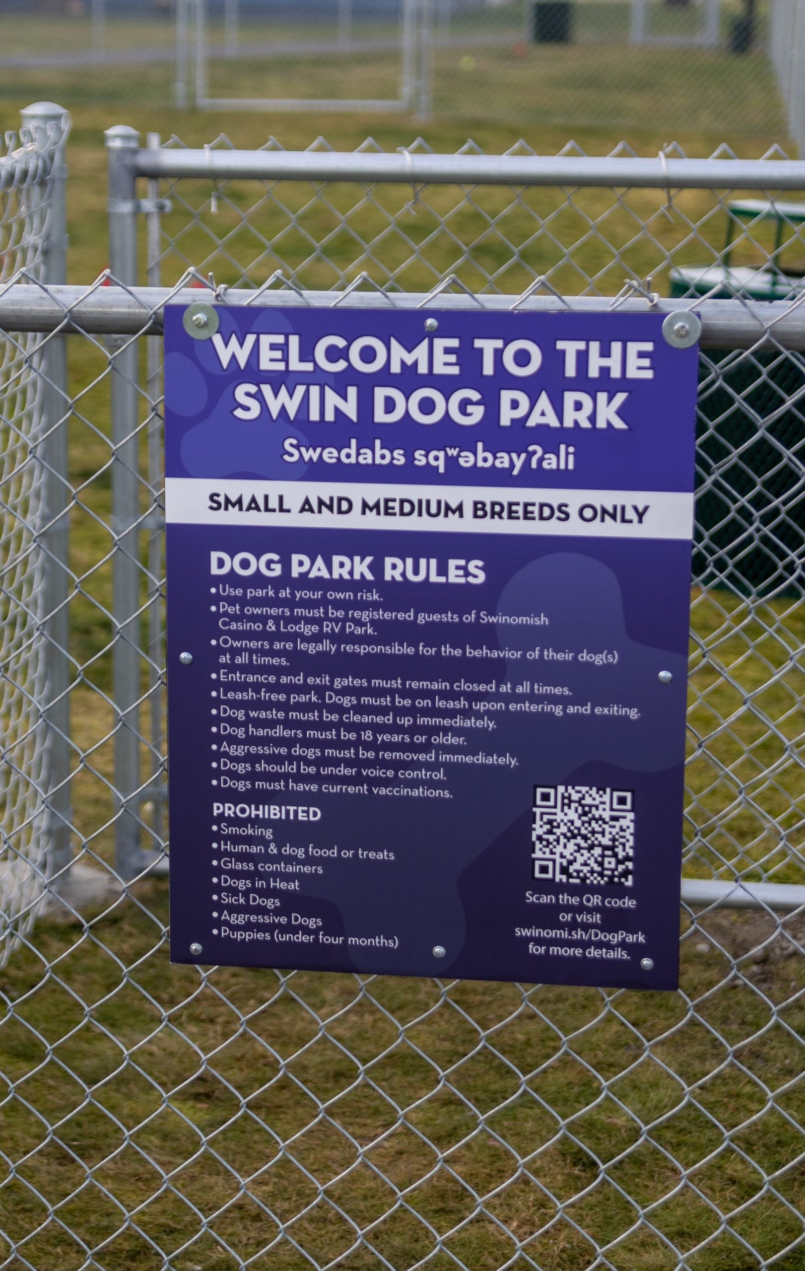 Registered guests with dogs are welcome to enjoy our newly established Swin Dog Park, located between the Lodge back patio and RV Park. Our dog park accommodates both large and small to medium dogs in separate designated areas. Under your supervision, your pet can exercise freely without a leash.